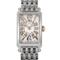 - フランクミュラーの豊富なコレクションの中でも、高い人気を誇るレクタンギュラーケースのロングアイランド。ダイヤル全面に広がるビザン数字やスペード型の時針など、1900年代初頭に一世を風靡したアールデコを髣髴とさせるクラシカルなデザインが特徴的です。アールが付いたケースシェイプは、手首のカーブに沿う事で抜群のフィット感が得られます。