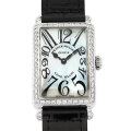 - フランクミュラーの豊富なコレクションの中でも、高い人気を誇るレクタンギュラーケースのロングアイランド。ダイヤル全面に広がるビザン数字やスペード型の時針など、1900年代初頭に一世を風靡したアールデコを髣髴とさせるクラシカルなデザインが特徴的です。こちらのモデルは白蝶貝のダイヤルにが光の角度によって表情を変える華やかなロングアイランドです。高級感あるフォルムでファッションアクセントからドレスアップまで美麗にきまるモデルです。