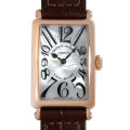 - フランクミュラーの豊富なコレクションの中でも、高い人気を誇るレクタンギュラーケースのロングアイランド。ダイヤル全面に広がるビザン数字やスペード型の時針など、1900年代初頭に一世を風靡したアールデコを髣髴とさせるクラシカルなデザインが特徴的です。こちらのモデルはピンクゴールドのケースに白蝶貝のダイヤルが組み合わせられた華やかなロングアイランドです。高級感あるフォルムでファッションアクセントからドレスアップまで美麗にきまるモデルです。