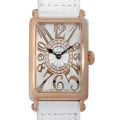 - フランクミュラーの豊富なコレクションの中でも、高い人気を誇るレクタンギュラーケースのロングアイランド。ダイヤル全面に広がるビザン数字やスペード型の時針など、1900年代初頭に一世を風靡したアールデコを髣髴とさせるクラシカルなデザインが特徴的です。こちらのモデルはダイヤル内にラウンド状にセッティングされたダイヤモンドがポイント。アールが付いたケースシェイプは、手首のカーブに沿う事で抜群のフィット感が得られます。