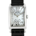 - フランクミュラーの豊富なコレクションの中でも、高い人気を誇るレクタンギュラーケースのロングアイランド。ダイヤル全面に広がるビザン数字やスペード型の時針など、1900年代初頭に一世を風靡したアールデコを髣髴とさせるクラシカルなデザインが特徴的です。こちらのモデルは白蝶貝のダイヤルにが光の角度によって表情を変える華やかなロングアイランドです。高級感あるフォルムでファッションアクセントからドレスアップまで美麗にきまるモデルです。