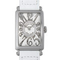 - フランクミュラーの豊富なコレクションの中でも、高い人気を誇るレクタンギュラーケースのロングアイランド。ダイヤル全面に広がるビザン数字やスペード型の時針など、1900年代初頭に一世を風靡したアールデコを髣髴とさせるクラシカルなデザインが特徴的です。こちらのモデルはダイヤル内にラウンド状にセッティングされたダイヤモンドがポイント。アールが付いたケースシェイプは、手首のカーブに沿う事で抜群のフィット感が得られます。