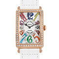 - 2004年に発表され、革新的なデザインで業界の話題を独占した”カラードリームコレクション”。生きる喜びをそのまま表現したいと考えていたフランクミュラーは、この世で最も美しいビーチで戯れ、笑い声を響かせていた若い男の子や女の子にインスピレーションを得てこの時計を創りました。 ダイヤが贅沢に取り巻かれたレクタンギュラー(長方形)ケース、シルバーの文字盤、中央から延びるように配された色とりどりのアラビアインデックスが見事に融合しフランクミュラーらしいゴージャスなデザインに仕上がっています。