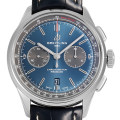 - 1940年代に製造されたプレミエ・シリーズ。こちらのモデルは、プレミエシリーズからインスピレーションを受け作られたクロノグラフタイプの時計です。3時位置に30分積算計、9時位置にスモールセコンド、6時位置に日付が配置されています。ブライトリング自社開発製造キャリバー01搭載。100M防水。