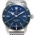 - ブライトリングを代表するダイバーズ・コレクション「スーパーオーシャン」。こちらは1957年に発表された初代スーパーオーシャンへのオマージュとして創作されたモデルです。当時のブライトリング・ロゴや独特の時針、メッシュブレスレットなどオールドモデルの雰囲気が楽しめるモデルです。自社ムーブメントであるCal.B20搭載、70時間パワーリザーブ。200M防水。