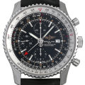 - ナビタイマーラインに新しく加わった“ナビタイマー・ワールド”。搭載されているCal.ブライトリング24は第2タイムゾーン表示機能をそなえ、世界のあらゆる時刻を24時間スケールで表示します。裏蓋には世界主要都市のタイムゾーンを刻印。ケース径46mm、厚さ15.5mmとかなりの大型モデルです。30m防水。