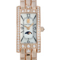 - 2017年新作。「アヴェニューC」を一回り小さくし、女性の細い腕にもエレガントにマッチするミニバージョンです。ローズゴールド製ケースにベゼルとリューズには合計47個ものダイヤモンドがセッティングされ、マザーオブパールの文字盤6時位置にムーンフェイズを備えた贅沢な1本。キャリバーHW5101クオーツムーブメントを搭載。3気圧防水。
