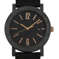 - イタリアの名門ジュエラーブルガリを代表するコレクション“ブルガリ・ブルガリ”。シリンダーの断面図をイメージして作られたユニークなラウンドケースに、大きなブランドロゴが刻印されたベゼルを備えています。オンにもオフにも活躍してくれるオールマイティーなモデルです。