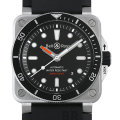- 「BR」シリーズはベル&ロスを代表するフラッグシップモデルです。 コックピット・クロックをイメージしたこの時計は、視認性を重視した機能的な道具という面が強調されており、 まさに「計器」といった雰囲気を漂わせるデザインです。こちらのお時計はベル&ロスとしては珍しい回転ベゼルを搭載したダイバーズ仕様のモデルです。