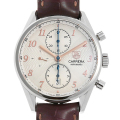 - 2011年バーゼルワールドで発表された“カレラ ヘリテージ クロノグラフ”。フリンケ装飾をあしらったシルバーダイアルに3つのサブカウンターを配し、ムーブメントに自動巻きCal.16を搭載したモデルです。カレラ1887クロノグラフのデザインを受け継ぎ、幅が狭いベゼルやシンプルなスモールセコンドを備えています。