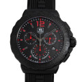- ブラックチタニウムカーバイドコーディングが施されたステンレス・スティールケースとブラックラバーストラップ、そして差し色としてレッドが効果的に使われたブラックダイアル。統一されたブラックが印象的な“フォーミュラ1・クロノグラフ・フルブラック”が入荷致しました。20気圧防水。