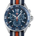 - F1のテクノロジーにインスピレーションを得たタグホイヤーの“フォーミュラ1”コレクション。カジュアルなスタイルに、F1という極限下の環境でも活躍できる機能性を兼ね備えています。サンレイ加工が施されたブルーダイアルにオレンジのセンターセコンド針のアクセントが印象的な仕上がりとなっています。NATO製のストラップを採用したモデルで、装着感も抜群です。2016年新作。200m防水。