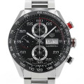 - カレラの2022年発表モデルが入荷致しました。44mmのステンレススティールケースに、キャリバー16を搭載したクロノグラフモデルです。ブラックで統一された文字盤・ベゼルは男性らしい落ち着きを感じさせ、差し色の赤が映えるお洒落なデザインです。こちらはカレラを象徴するステンレス製のブレスレット装着モデルです。パワーリザーブ42時間。100m防水対応。