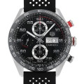 - カレラの2022年発表モデルが入荷致しました。44mmのステンレススティールケースに、キャリバー16を搭載したクロノグラフモデルです。ブラックで統一された文字盤・ベゼルは男性らしい落ち着きを感じさせ、差し色の赤が映えるお洒落なデザインです。こちらパンチング加工を施したラバーストラップ装着モデルです。パワーリザーブ42時間。100m防水対応。