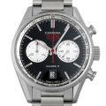 - カレラらしいクラシカルなデザインの2カウンタークロノです。クールなブラックの文字盤にシルバーのインダイヤルが配置され、スポーティーなレッドカラーがアクセントとなっています。ムーブメントはCOSC認定クロノメーター「キャリバー17」を搭載。100m防水。
