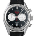 - そしてスポーティーなレッドカラーがアクセントとなったオシャレな2カウンタークロノです。ベルトの裏地にも鮮やかなレッドが使われ、個性的なモデルとなっています。ムーブメントはCOSC認定クロノメーターであるキャリバー17を搭載しています。100メートル防水性能。