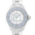 - 2015年発売 世界1200本限定のJ12 ソフトブルーです。ROSE、MINT、BLUEの三色がラインアップされ、それぞれが1200本の限定生産です。こちらは「BLUE」の33mmモデル。ソフトブルーカラーの逆回転防止ベゼル、インデックス、秒針が可愛らしい印象です。
