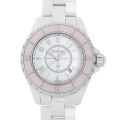 - 2015年発売 世界1200本限定のJ12 ソフトピンクです。ROSE、MINT、BLUEの三色がラインアップされ、それぞれが1200本の限定生産です。こちらは「ROSE」の33mmモデル。パステルピンクカラーの逆回転防止ベゼル、インデックス、秒針が可愛らしい印象です。