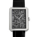- 洗練された存在感のあるケースデザインが印象的なモデルです。 リューズにブラックスピネルカポションがセッティングされています。ブラック、グレーのツイードパターンには凹凸が付けられ立体的に見えるように作られており、こちらのモデルはデイト表示機能付きのミディアムサイズです。防水性30m