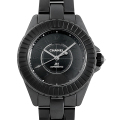 - “J12”コレクションの33mmモデル初の自動巻きモデルです。自社製ムーブメント“キャリバー12.2”を搭載しております。ケースやブレスレットはブラックセラミック製でベゼルは艶のあるバゲットパターンが施されたサファイア製です。文字盤のインデックスもブラックでカラーリングされております。リューズにはブリリアントカットダイヤモンドが配置され華やかな印象が演出されます。 50m防水。パワーリザーブ70時間。2021年新作。