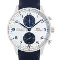 - 1930年代、ポルトガルの商人がオーダーメイドした時計を原形として製造が開始されたポルトギーゼ。ムーブメントはパワーリザーブ46時間のCal.69355を搭載。上品なホワイト文字盤には視認性の良いアラビア数字と優美なリーフ針が配されています。3気圧防水。