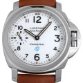 - パネライのフラグシップ・ルミノールの2016年発表モデルが入荷しました。裏蓋がねじ込み式からはめ込み式に変更となり、視認性高い44mmのケース径はそのままにすっきりとしたフォルムを獲得しました。ムーブメントにはクロノメーター認定の手巻き式Cal.OPIIを搭載。ホワイトダイアル上の青いOPロゴがクールなアクセントとなっています。100m防水。
