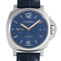 - パネライ史上最小、最薄「ルミノール ドゥエ」。2019年発表のこちらは、ケース径42mmのサテン仕上げチタンケースにサテンソレイユ仕上げのブルーダイアルを合わせたモデルです。ムーブメントには3日間パワーリザーブのパネライ自社製Cal.P.900を搭載しており、洗練されたエレガントなデザインも兼ね備えたモデルとなっております。防水機能は3気圧です。