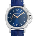 - ケースはステンレス製でサンレイ仕上げが施されたブルー文字盤です。ムーブメントには3日間パワーリザーブのパネライ自社製Cal.P.900を搭載しており、洗練されたエレガントなデザインも兼ね備えたモデルとなっております。防水機能は3気圧です。
