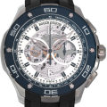 - ロジェ・デュブイが示す4つの世界観のうちの一つ“ベンチャラー(冒険者)”を表現した「パルジョン」シリーズ。最大の特徴は素材感を前面に押し出したサファイアガラスです。直接ビス留めされたサファイアガラスがベゼル部分まで覆い独特の雰囲気を作り出しています。搭載ムーブメントは自動巻きRD680。パワーリザーブ約52時間。ジュネーブシールの刻印有。COSC認定取得。10気圧防水。