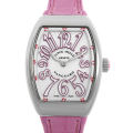 - 新たな曲線(カーベックス)を携える最新コレクション“ヴァンガード”のレディースモデルが入荷致しました。ケースにベルトを没入させたラグをもたない一体構造が最大の特徴です。こちらはピンクの縁取りがされた立体的なインデックスが印象的な1本。ベルトやケースサイドにもピンクがあしらわれ、女性らしさに溢れたデザインです。