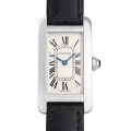 - 1930年代にカルティエのニューヨーク店が生み出したと言われている”タンクアメリカン”。縦に伸びたスクエアケースが特徴で、他のタンクシリーズとは一線を画す独特なデザインが人気です。シンプルな文字盤に配された上品なローマンインデックスが絶妙のコントラスト。八角形のリューズにはサファイヤが埋め込まれており、シャープな中にエレガントさも兼ね備えている上品な逸品です。