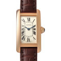 - 1930年代にカルティエのニューヨーク店が生み出したと言われているタンクアメリカン。縦に伸びたスクエアケースが特徴で、他のタンクシリーズとは一線を画す独特なデザインが人気です。シンプルなアイボリーダイヤルに配された上品なローマンインデックスが絶妙のコントラスト。八角形のリューズにはサファイヤが埋め込まれており、シャープな中にエレガントさも兼ね備えている上品な逸品です。
