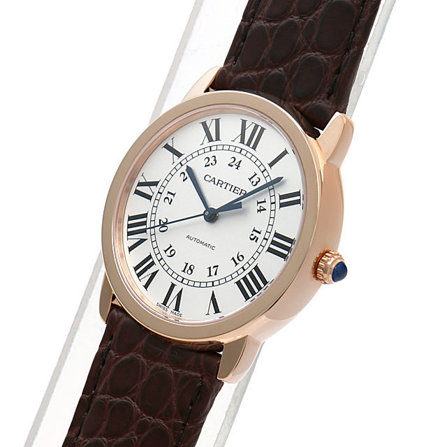 - シンプルなラウンドケースが人気の「ロンド ソロ ドゥ カルティエ」。ローマ数字やシルバーダイアルに映えるブルーの剣型針など、至る所にカルティエデザインの特徴が生かされたクラシカルなフォルムが魅力の時計です。