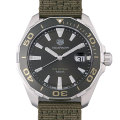 - タグホイヤー2018年新作「アクアレーサー 300M」が入荷致しました。カーキのナイロンストラップが特徴的なミリタリーテイストのデザイン。アルミニウム製ベゼルと使い勝手の良いクォーツムーブメントを搭載しています。300m防水対応。ベゼルは逆回転防止型、リューズはねじ込み式です。