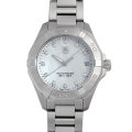 - タグホイヤーのダイバーズコレクション“アクアレーサー”のレディースモデルです。ホワトシェル文字盤にダイヤモンドを11ピースあしらったエレガントなフェイスに、300m防水や一方向回転ベゼルを備えています。
