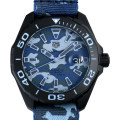 - 2017年 タグ・ホイヤー新作「アクアレーサー セラミック キャリバー5 カモフラージュ」を入荷しました。このモデルはミリタリー調でありながらも、ファッション性を意識した仕上がりとなっており、ストラップにはブルーカモフラージュのNATOストラップが使われています。搭載ムーブメントはキャリバー5。骨太になりがちなミリタリー調なデザインには珍しく薄型設計になっているため、様々なシーンで活躍できる1本です。