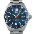 - F1のテクノロジーにインスピレーションを得たタグホイヤーの“フォーミュラ1”コレクション。カジュアルなスタイルに、F1という極限下の環境でも活躍できる機能性を兼ね備えています。サンレイ加工が施されたブルーダイアルにアルミニウム製の回転ベゼル、そしてオレンジのセンターセコンド針のアクセントが印象的な仕上がりとなっています。2016年発表。