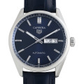 - 2022年新作の自動巻きキャリバー5搭載“カレラ デイデイト”です。針が若干太くなったことで視認性が更に向上しました。また、文字盤のロゴと「CARRERA」の書体が新しくなり、ケースサイドがサテン仕上げになりました。日付フレームも細くなり、細かいディティールが変更されたことでよりスタイリッシュなデザインに仕上がっています。バックスケルトンからはテンプの動きとローターをご覧いただけます。パワーリザーブ約38時間。100m防水。