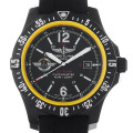 - こちらの“コルト・スカイレーサー”は、コルトシリーズに新たに加わったモデルで、一般的なクォーツの10倍の精度を誇るスーパークォーツムーブメント「ブライトリング74」を搭載しています。ケースには新素材となるBreitlight(ブライトライト)を採用。これによりチタンの30%ほどの軽量さとそれを超える強靭さ、そして高い耐磁性能を手に入れました。100M防水。
