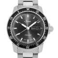 - 明確な構造を持つ104シリーズは、伝統的なスタイルを受け継ぐクラシックなパイロットウォッチです。時刻と日付・曜日の優れた視認性に加え、分表示を刻んだ両方向回転式パイロットベゼルは独自の堅牢な装着方式により高い信頼性を誇ります。本モデルは、深みのあるアンスラサイトカラーにサンレイ仕上げを施したダイアルが時代を越えた気品を演出。ポリッシュ仕上げのステンレススティールケースに両面無反射コーティングを施したサファイアクリスタル風防、シースルーバックから見える精緻なムーブメントが、高い実用性と美しさを兼ね備えた一本です。