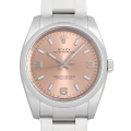 - デイトカレンダーを持たないシンプルな“オイスターパーペチュアル”です。ムーブメントはCOSC認定の自動巻きCal.3130を搭載。バーインデックスの夜光が大きく視認性も抜群です。ケースサイズがメンズとしては小ぶりな34mmのため、女性にもお勧めできます。