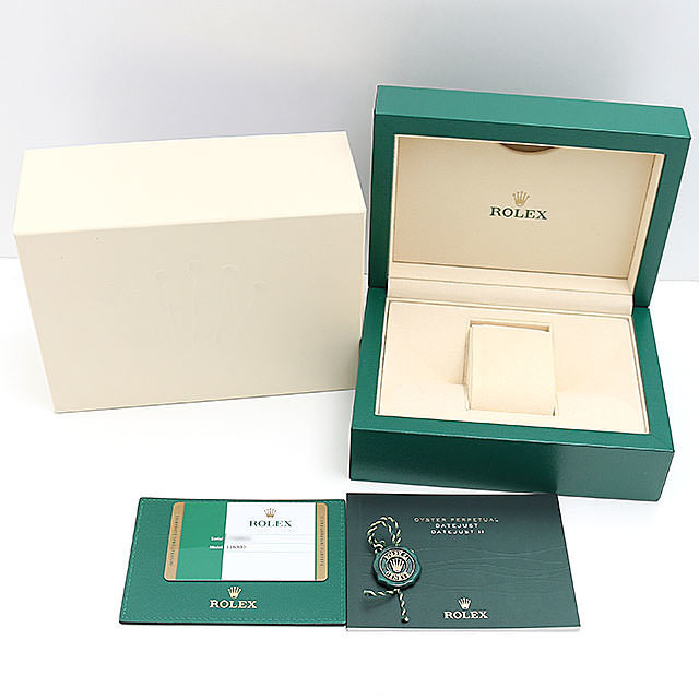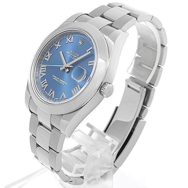 - 2012年のバーゼルで発表されたデイトジャストIIの新型モデルが入荷いたしました。それまでコンビだけだったケース素材がステンレススティールになり、すっきりしたポリッシュベゼルが特徴的です。ケース径41mmと大きめながら、爽やかなブルーダイアルとローマインデックスが映えるスマートなデザインとなっています。ムーブメントには磁力の影響を受けにくいパラクロム製のヒゲゼンマイを採用したムーブメントCal.3136を搭載しています。