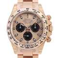 - 腕時計を代表する傑作とも言えるコスモグラフ・デイトナ。細部に至るまで丁寧に仕上げられたケースには、従来のピンクゴールドに微量のプラチナが入ったエバーローズゴールドを使用しており、輝きの衰えない上品で鮮やかな色味が魅力です。プッシュボタンで操作可能な秒・分・時のクロノグラフや、タキメーターとして機能する目盛り付きベゼルを備えており機能性も抜群です。