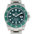 - 2010年のバーゼルワールドで発表された、“サブマリーナ・デイト”の入荷です。ロレックス社のコーポレートカラーでもあるグリーンをベゼルとダイアルに纏った、斬新なカラーリングのスポーツモデルです。ベゼルはステンレス製からキレイで艶のあるセラクロム(セラミック)に変更され、ドットタイプのインデックスも大きめで見やすくなるなど、様々な仕様が変更となりました。