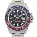 - 2014年発表"GMTマスターII"人気の赤青ベゼルのホワイトゴールド製モデルです。ステンレスでは味わえない、着用時のずっしりとした重量感が魅力的です。ファンから要望の高かった、ツートーンベゼルをセラクロムで製作した意欲作でもあります。搭載されるCal.3186にはパラクロムヘアスプリングが採用され耐磁・耐衝撃性能に優れています。