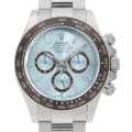 - ロレックスを代表する傑作クロノグラフ"コスモグラフ デイトナ"。こちらはケースとブレスレットにプラチナを採用し、インデックスにはバゲットカット・ダイヤモンドがセッティングされています。セラクロムベゼルの外周にメタル素材が追加され、インダイアルはベゼルと同色のチェスナットブラウンを採用。全体の印象が一層引き締まり、上品なコントラストを生み出しています。また、本作の大きな特徴は、シリーズ初となるシースルーバック仕様を採用した点。新世代ムーブメント「Cal.4131」と、18K製ローターの精緻な動きを鑑賞できる構造となっており、デイトナの新たな魅力を感じさせる一本です。