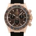 - 言わずもがなのロレックス・スポーツモデルの最上位機種であり、最人気機種のコスモグラフ・デイトナ。1959年に誕生したデイトナですが、24時間耐久カーレースで有名なデイトナ・インターナショナル・スピードウェイの名にちなんで命名されました。こちらはチョコレートブラウンダイアルに、ブラックセラクロムベゼルを備えています。またケースは2005年に発表され、美しさを長く維持するために自社開発後特許を取得したエバーローズゴールドが採用されており、より魅力的な1本となっています。