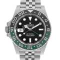 - 2022年のバーゼルワールドで発表された異色の"GMTマスター"です。これまでになかったグリーン×ブラックのツートンベゼルもさることながら、ムーブメントCal.3285を反転させることで9時位置にリューズ・デイト表示を配した、レフティ仕様の逸品です。特筆すべきは、高精度クロノメーター認定機であること。一般的にムーブメントは姿勢差によって精度が大きく変わるものですが、Cal.3285を反転させているにも関わらず、優秀な正確性と信頼性を発揮しています。なお、ヘッドとブレスレットの重量バランスが絶妙かつイージーリンクが搭載されておりますので、右腕でも左腕でも快適な装着感を実現してくれます。パワーリザーブ約70時間、100m防水仕様。