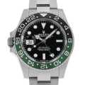 - 2022年のバーゼルワールドで発表された異色の"GMTマスター"です。これまでになかったグリーン×ブラックのツートンベゼルもさることながら、ムーブメントCal.3285を反転させることで9時位置にリューズ・デイト表示を配した、レフティ仕様の逸品です。特筆すべきは、高精度クロノメーター認定機であること。一般的にムーブメントは姿勢差によって精度が大きく変わるものですが、Cal.3285を反転させているにも関わらず、優秀な正確性と信頼性を発揮しています。なお、ヘッドとブレスレットの重量バランスが絶妙かつイージーリンクが搭載されておりますので、右腕でも左腕でも快適な装着感を実現してくれます。パワーリザーブ約70時間、100m防水仕様。