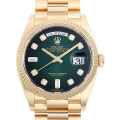 - 2019年に発表されたケース径36mmのデイデイトです。イエローゴールドのケース&ブレスに8ポイントのダイヤモンドと6・9時位置には2ポイントのバゲットダイヤモンドをセッティングしています。ムーブメントにはロレックスが開発した新世代ムーブメントキャリバー3255を搭載。パワーリザーブ約3日間。100m防水。